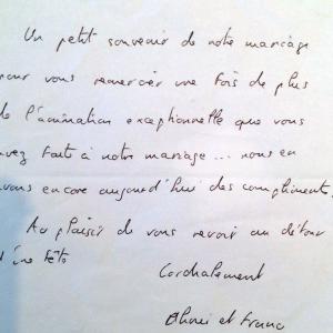 Nous revenons vers vous pour vous remercier de nouveau pour tout ce que vous avez fait pour notre mariage. C'était tout simplement parfait !