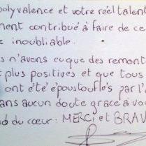 Encore un grand merci pour ton spectacle toujours parfait, ton professionnalisme, ta bonne humeur